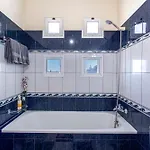 Há 3 quartos e cozinha totalmente equipada com microondas, frigorífico e aparelhos de cozinha. 3 casas de banho são oferecidas aos hóspedes. Bidé, banheira e casa de banho à parte estão lá à sua disposição.